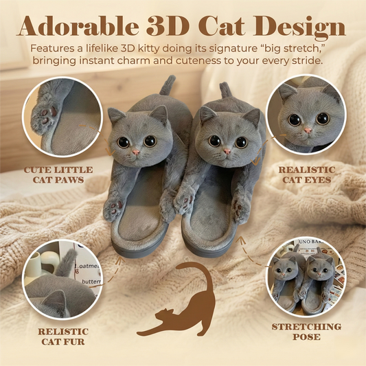 The "Big Stretch" Kitty Slides - Ultra Soft 3D Cat Slippers